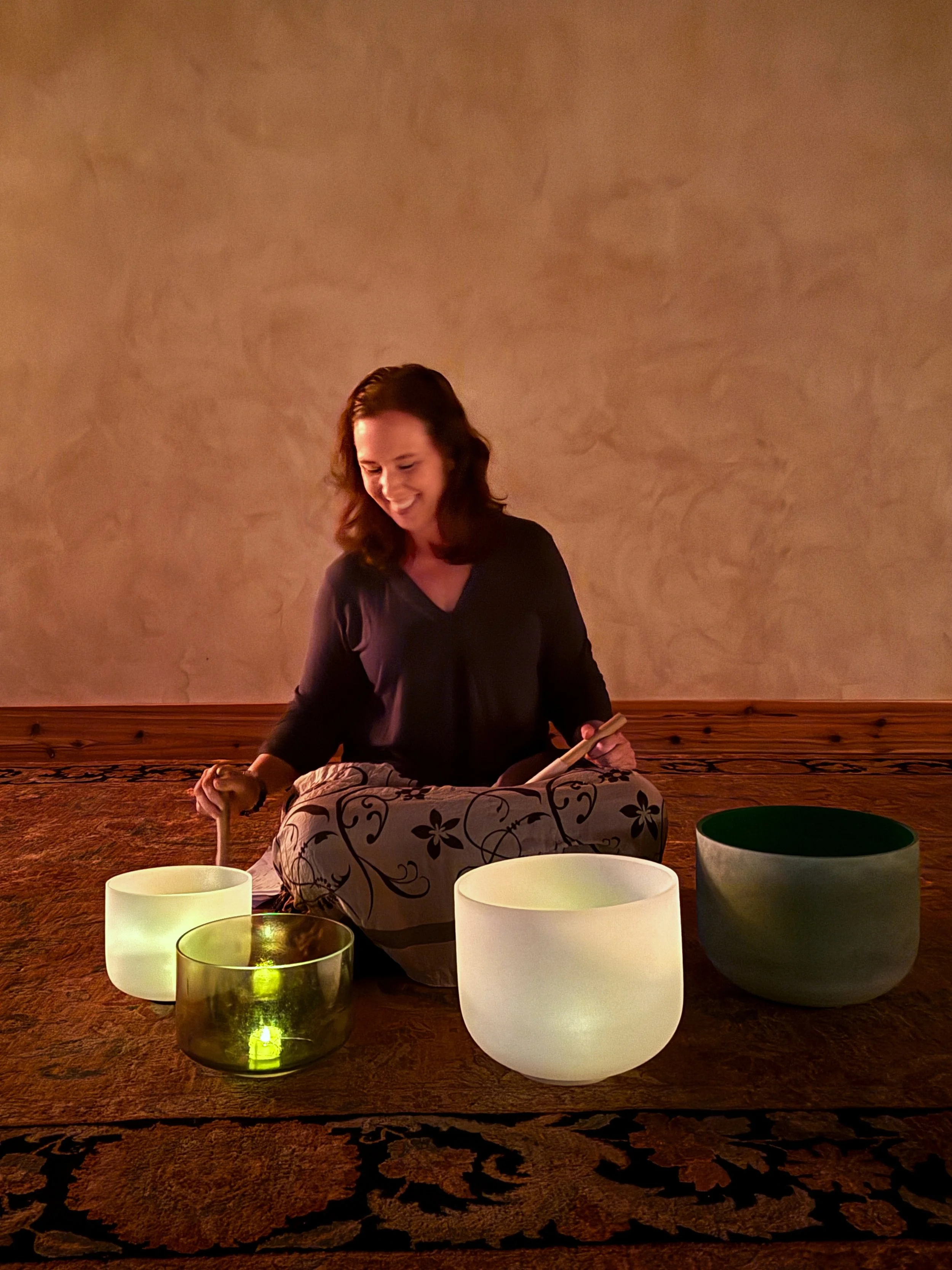 Prerecorded and in person somatic and sound meditations to support integration